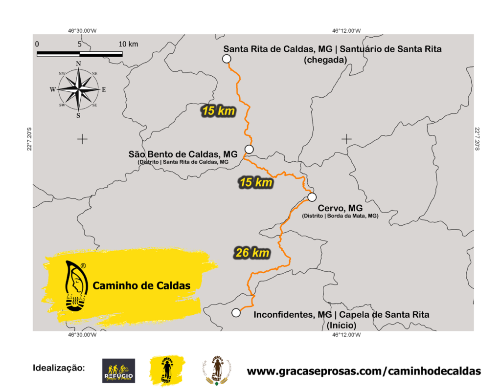 O início oficial é na Capela de Santa Rita em Inconfidentes, MG e termina no Santuário de Santa Rita na cidade de Santa Rita de Caldas, MG.
